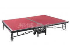 折疊舞臺,可折疊,裝有4個帶剎車高強度輪子,存儲節(jié)省空間,比較高檔,配合高檔絨布圍裙,折疊舞臺,活動舞臺,升降舞臺,鐵舞臺,流動舞臺,組合舞臺,可拆卸舞臺;此款舞臺承受力強,每平方可以承受800kg,多用于酒店慶典,婚慶等高檔活動。