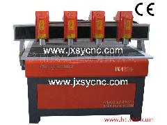 木工雕刻機(jī)、家具雕刻機(jī)、古典家具雕刻機(jī)、亞克力雕刻機(jī)、工藝品雕刻機(jī)、浮雕雕刻機(jī)、影雕雕刻機(jī)適用范圍:木工行業(yè):古典家具產(chǎn)品的生產(chǎn)加工。廣告行業(yè):廣告標(biāo)牌、標(biāo)識(shí)制作、亞克力切割、吸塑制模、多種材料廣告裝飾產(chǎn)品的制作其他行業(yè):可以雕刻各種影雕、浮雕,廣泛應(yīng)用于工藝禮品行業(yè)性能特點(diǎn):1、機(jī)器整體全鋼結(jié)構(gòu),鋼性強(qiáng)、堅(jiān)固耐用不變形;三軸采用高精度進(jìn)口滾珠絲桿,導(dǎo)軌,確保機(jī)器精度。2、采用大功率水冷主軸電機(jī),噪音小,壽命長,運(yùn)行平穩(wěn);配德國產(chǎn)雙螺母滾珠絲杠,進(jìn)口導(dǎo)軌,雕刻時(shí)各方向受力均勻等,保證了機(jī)械精度和強(qiáng)度。3、四個(gè)機(jī)頭可同時(shí)加工,也可單獨(dú)使用,比單機(jī)頭提高四倍的效率。采用對(duì)斷點(diǎn)記憶方式,保證可在意外(停電)或隔天情況下繼續(xù)加工。4、軟件兼容性好,可兼容type3/Artcam/Castmate/文泰等多種CAD/CAM設(shè)計(jì)制作軟件。