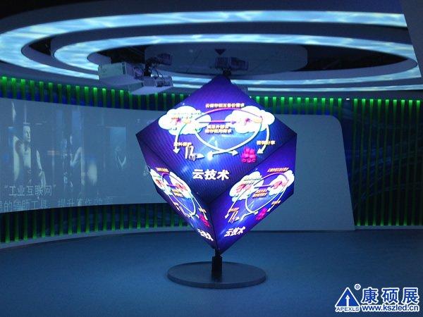 LED立方體顯示屏為安徽合肥高新區(qū)管委會展廳特別訂制而設計,1.28米邊長的