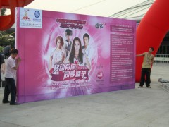 裱在圍扳上或直接在圍扳上絲印、結(jié)實耐用,適用于各類促銷會和展會等,產(chǎn)品展示形象突出,可拆裝、便于攜帶。