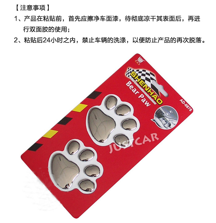 外型非??蓯?ài),小動(dòng)物的爪子踩踏印的摸樣。瞬間車子似乎有了靈氣,想必你定會(huì)心動(dòng)??蓯?ài)的卡通圖案使您的車子更有動(dòng)感與溫馨。