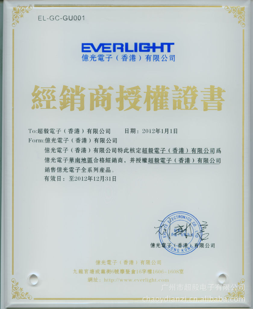 億光授權(quán)合作伙伴證書: