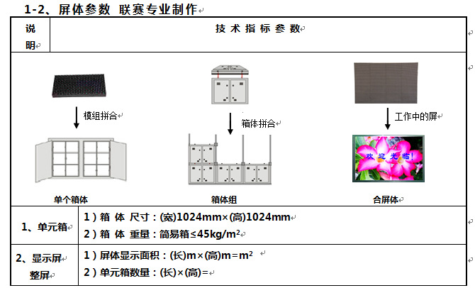 9、拼裝結(jié)構(gòu) | 單元模組化結(jié)構(gòu)設(shè)計(jì),屏面采用模組——顯示箱體——顯示屏組合拼裝結(jié)構(gòu),組裝方便。 |