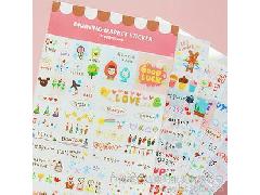 韓國(guó)文具 粉色人生 手繪表情角貼 DIY相冊(cè)相片裝飾貼紙 6張