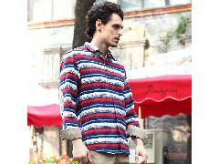 瑪蘭西卡 秋款彩色條紋襯衫 男士長袖休閑襯衫韓版修身潮男襯衣
