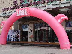 充氣拱門(又稱彩虹門)包括普通拱門、造型拱門、特種造型拱門和多拱連體拱門,數(shù)十多米巨大的彩虹造型加上圖案、文字,具有視覺沖擊效果,以達到更直接、更強烈、更有效的廣告效應,是廣 告宣傳的有效媒體;同時具有方便、快捷、經(jīng)濟等優(yōu)點。目前,開業(yè)慶典及各類博覽會、展銷會等活動 首選的戶外廣告