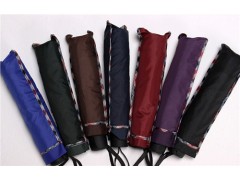 絳綸布的特點(diǎn)是:顏色較艷麗,把雨傘面料放在手上搓揉后,折痕明顯,不容易還原。布料在搓動(dòng)的時(shí)候,會(huì)感覺到有阻力,搓的時(shí)候會(huì)有沙沙的聲音。在滌綸上涂上一層銀膠,就是我們通常所說的銀膠傘,銀膠布防紫外線的功能是比較好的,但使用時(shí)間長后,折疊的地方銀膠容易脫離。在滌綸上涂上一層銀光粉,就是我們通常所說的珠光布傘,珠光布的色彩比較艷麗,深得女士喜愛,但防太陽紫外線效果不夠理想。